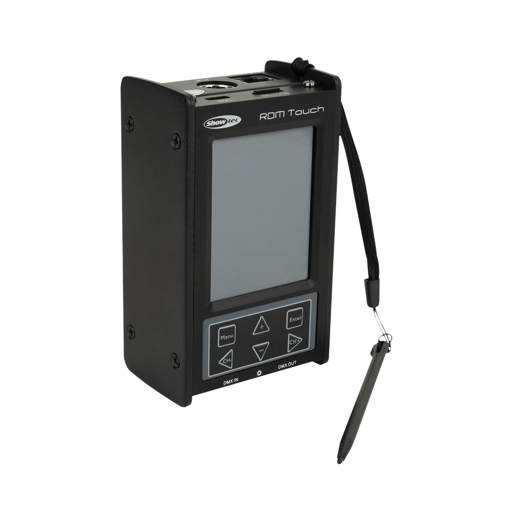 Showtec RDM Touch er det ultimative værktøj for enhver belysningstekniker. Med sine alsidige funktioner og brugervenlige 6-knaps + fuldfarve TFT touchscreen display, er RDM Touch fuldt udstyret til at måle, teste og fejlfinde enhver applikation med DMX-kontrolleret belysning. Denne enhed kan bruges til at teste 3- og 5-pin kabler, teste midi signaler, overvåge og analysere signaler, programmere sekvenser, sende og modtage DMX, og er også udstyret med en RDM controller funktion. Det er den ultimative løsning for at skabe fred og balance i mange af livets DMX512-udfordringer. RDM Touch leveres inklusive bæretaske og 3 til 5-pin XLR-adaptere.