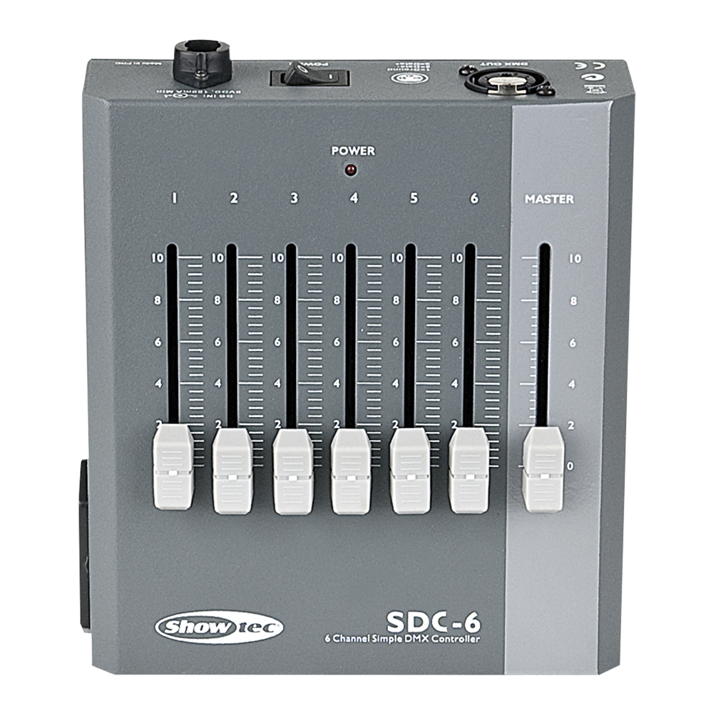 SDC-6 er en lille batteridrevet 6-kanals DMX-controller. Den er meget velegnet til enkle applikationer såsom udstillinger, små butikker samt til test af dit DMX-udstyr.