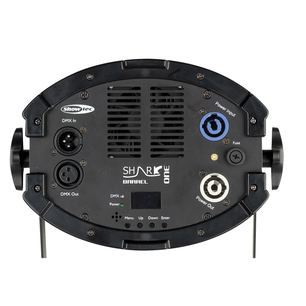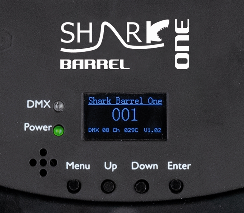 Showtec Shark Barrel One er en kompakt 100 watt LED Barrel med 7 (roterende) gobos + åben, 8 farver + hvid og 3-faset prisme, egnet til indendørs lokaler. Hver funktion og effekt, som dens barrelrotation, strobe, dæmp og fokusfunktioner, kan styres via DMX og Master/Slave i enten manuel, automatisk og lydstyret tilstand.