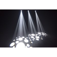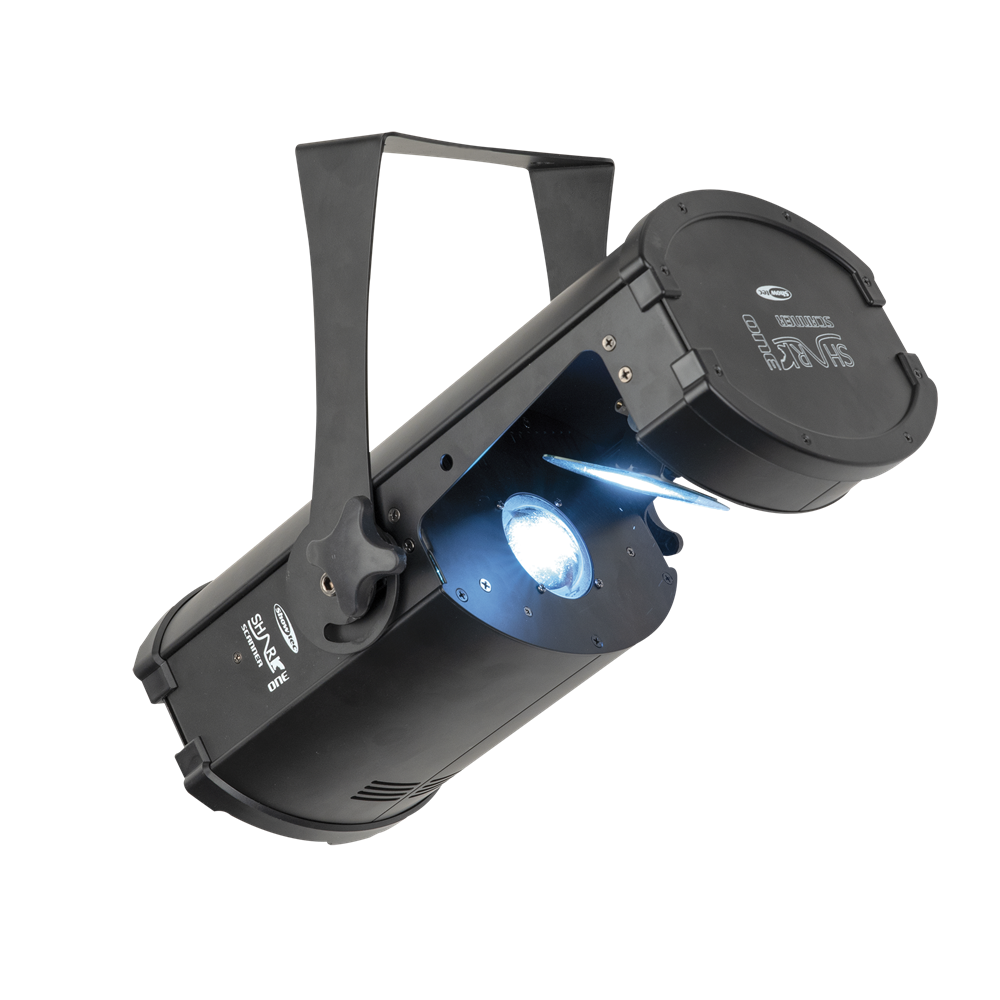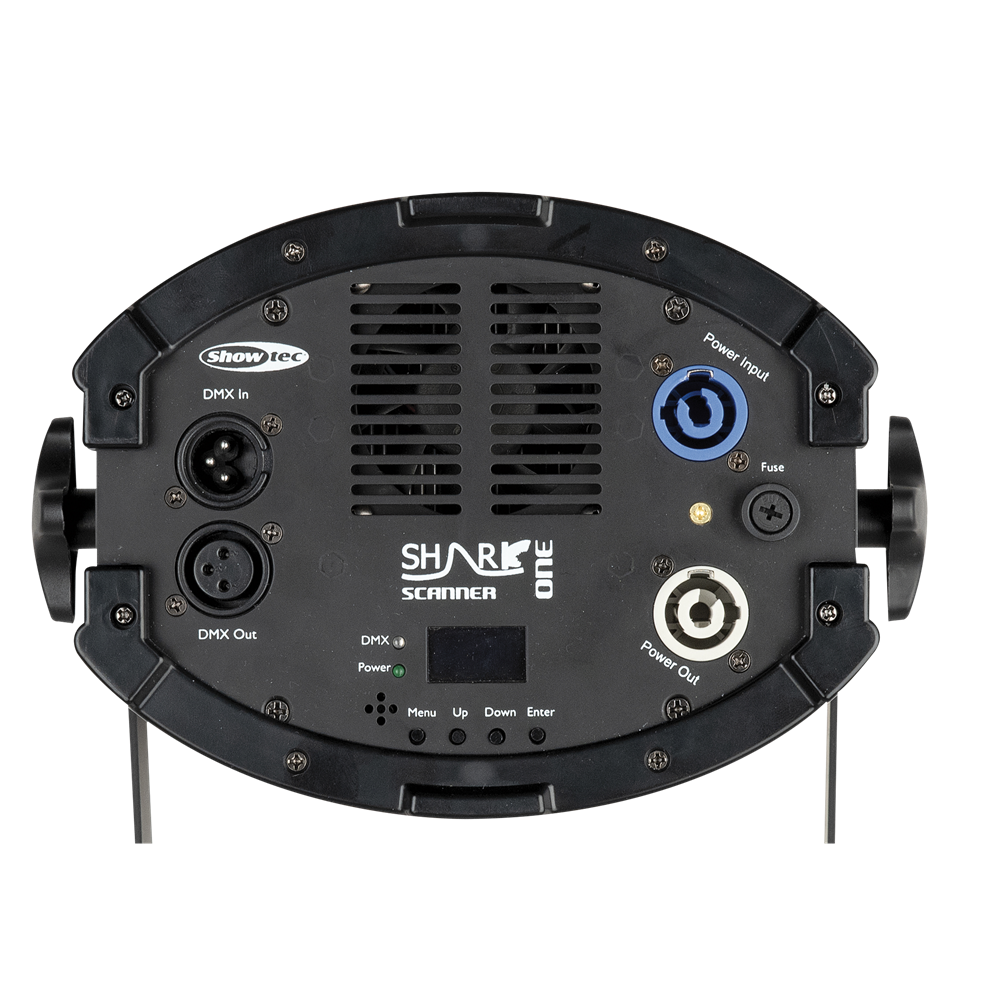 Showtec Shark Scan One er en kompakt 100 watt LED scanner med 7 roterende gobos + åben, 8 farver + hvid og 3-facet prisme, velegnet til indendørs steder. Hver funktion og effekt, som dens strobe-, dimme- og fokusfunktioner, kan styres via DMX og Master/Slave i enten Manuel, Auto run og Lydstyret tilstand.