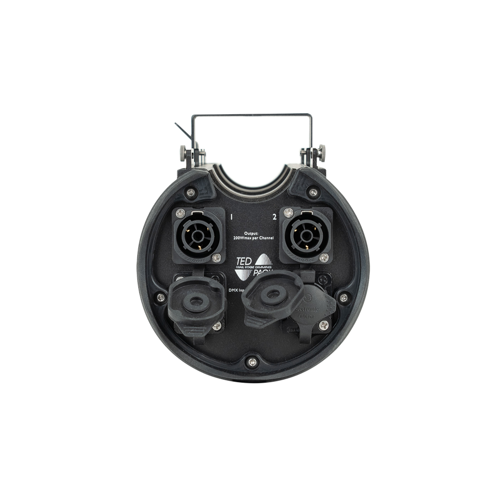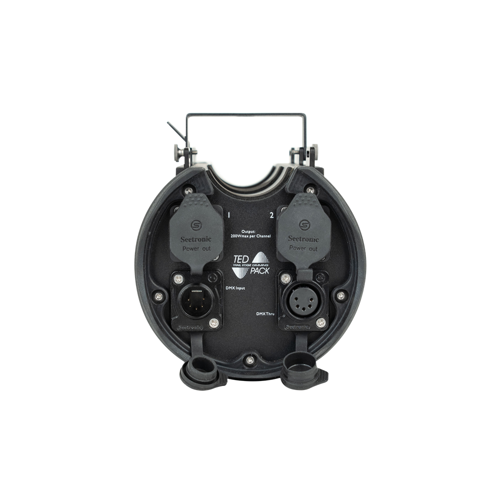 The Showtec TED Pack IP is a 500-W leading and trailing edge 2-channel dimmer with an IP65 rating for temporary outdoor use. It has dim, switch, and FX modes, is RDM-capable, and equipped with sturdy Seetronic connectors. The outputs are independent of the connected load and can be used with LEDs and incandescent lights up to 2 A divided over the two channels. The TED Pack IP uses MOSFETs to dim the output and can be switched between leading edge and trailing edge dimming. The Special FX mode offers a safety channel that prevents unintentional activation, which can be helpful for controlling shooters, canons, drops, et cetera. The unit can be controlled manually and via DMX and RDM.