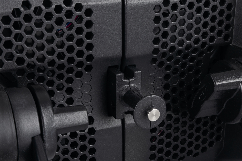 The Titan Connection Block is a robust metal connector designed for the Titan Strobe 1000 FX and allows you to couple multiple units horizontally or vertically. The block slides into the dedicated slots on all four sides of the fixtures and locks securely in place with an integrated locking pin system. The ergonomic handle makes removal quick and easy, while also housing the release mechanism for the locking pin. The Titan Connection Block has a black finish and combines durability with convenience for professional-grade installations.