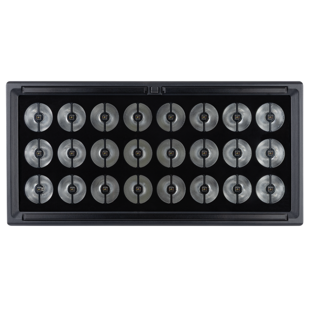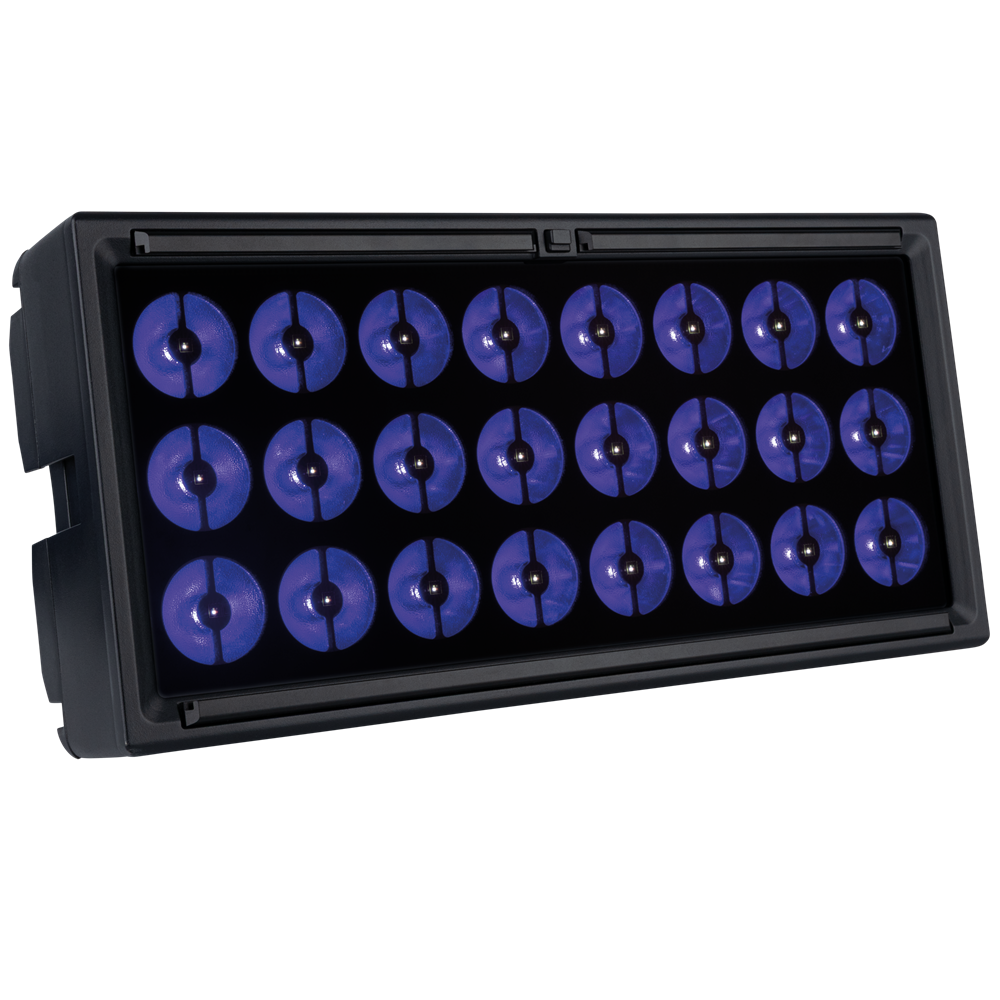 The Titan Matrix FX is a matrix light with fully controllable pixels. It features 3 rows of 8 RGBW LEDs (24 in all) that are covered with a lens and in front of each lens is a 6 W RGBW LEDs (another 24). This combination makes it possible to create bold, colourful. geometric patterns, making the Titan Matrix FX an excellent choice for live events, studios and more. With an IP65 rating, it can also be used outdoors.