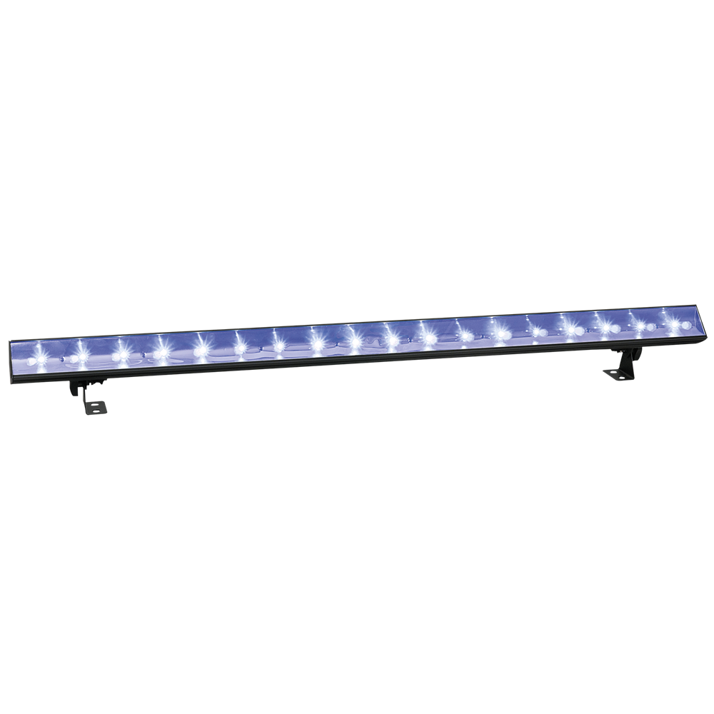 Skab en specialeffekt med denne UV LED-bar. Den producerer en violet farve (bølgelængde 410 nm), som får alle fluorescerende farver til at lyse op. UV LED-baren er meget velegnet til små klubber, mobile DJs osv.