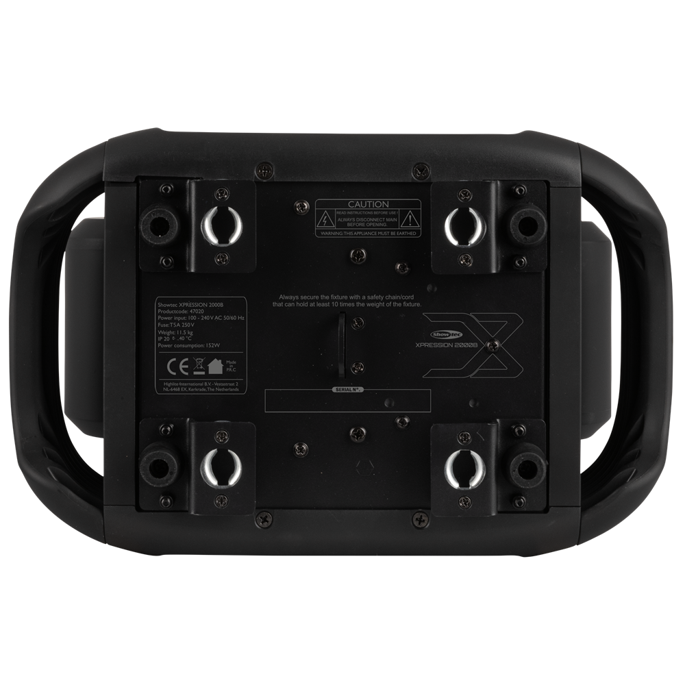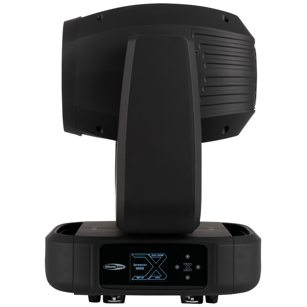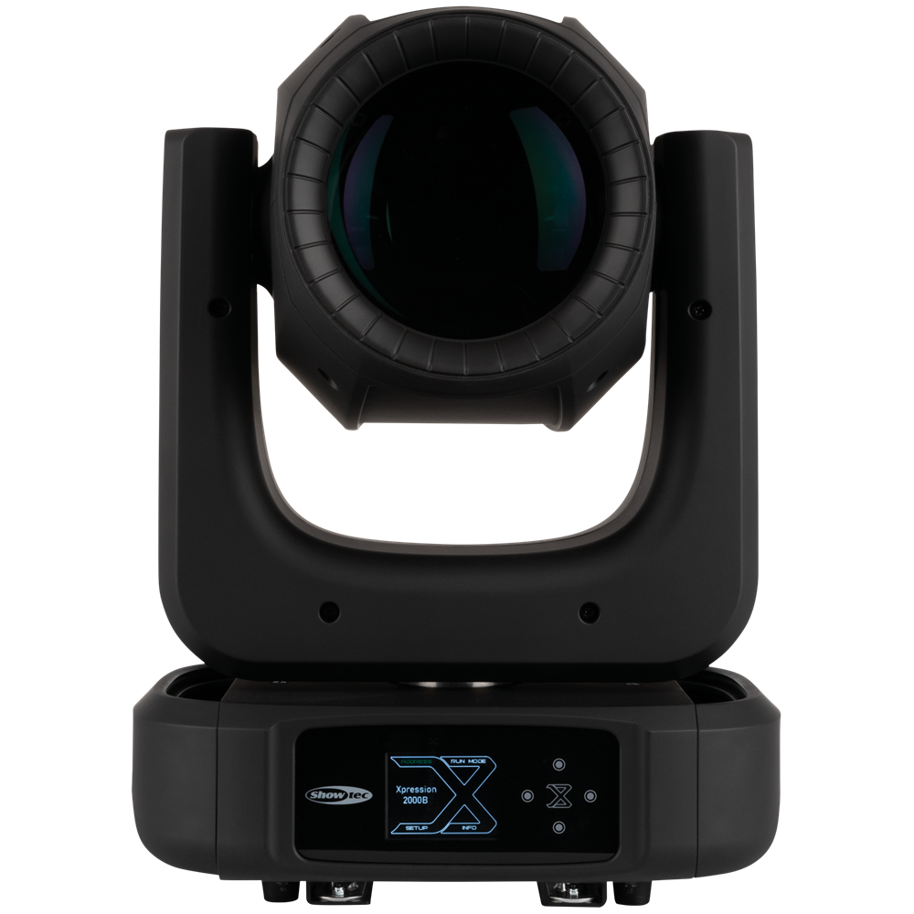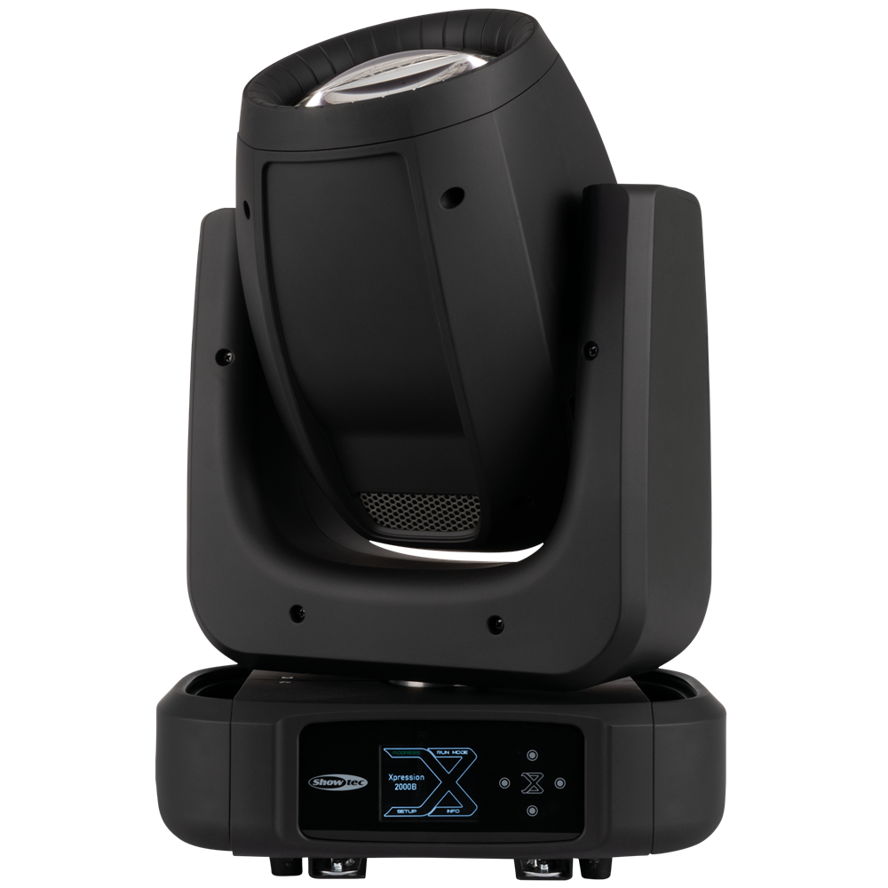 Showtec Xpression 2000B - Beam er en lysstærk, medium stor LED bevægeligt hoved med en strålevinkel på 2°, en stor linse (12,5 cm) og en effekt på 2392 lumen, velegnet til indendørs steder. Den har et dichroisk farvehjul med 14 farver + åben, et metal gobo-hjul med 13 gobos + åben, og dobbelte cirkulære prismer med 8 og 48 facetter, der kan lægges oven på hinanden og roteres for dynamiske effekter som en moonflower-effekt. Andre funktioner inkluderer en frost-effekt, motoriseret fokus, præcis 16-bit-pan og uendelig tilt og justerbar PWM (1.200 - 15.000 Hz). Alle farve- og gobo-effekter er perfekt matchet i hele Xpression-serien, hvilket sikrer problemfri integration med andre dele i serien.