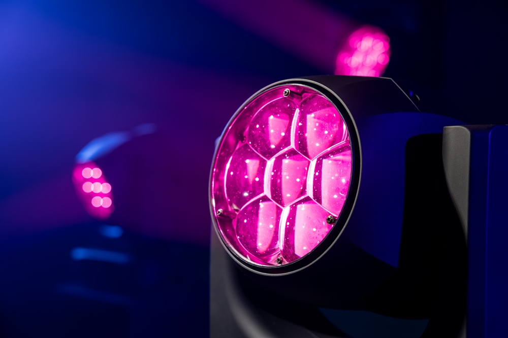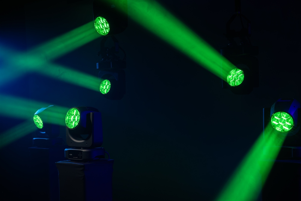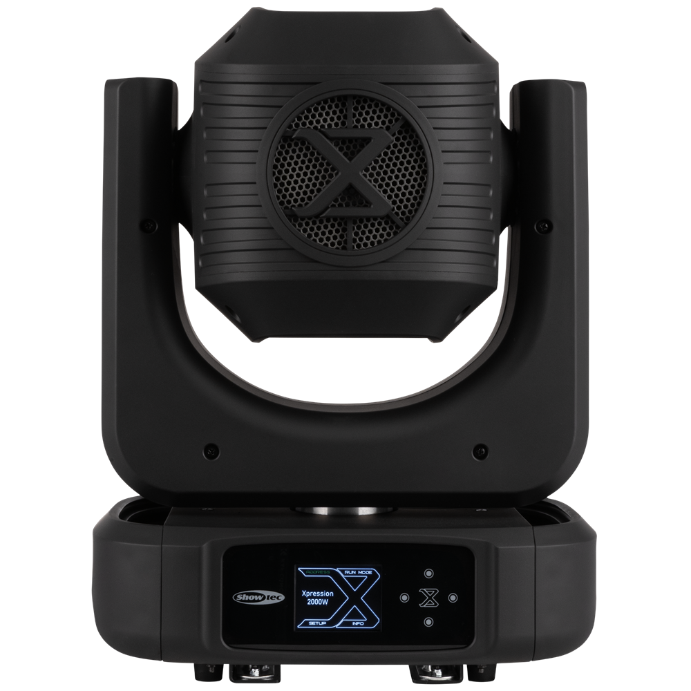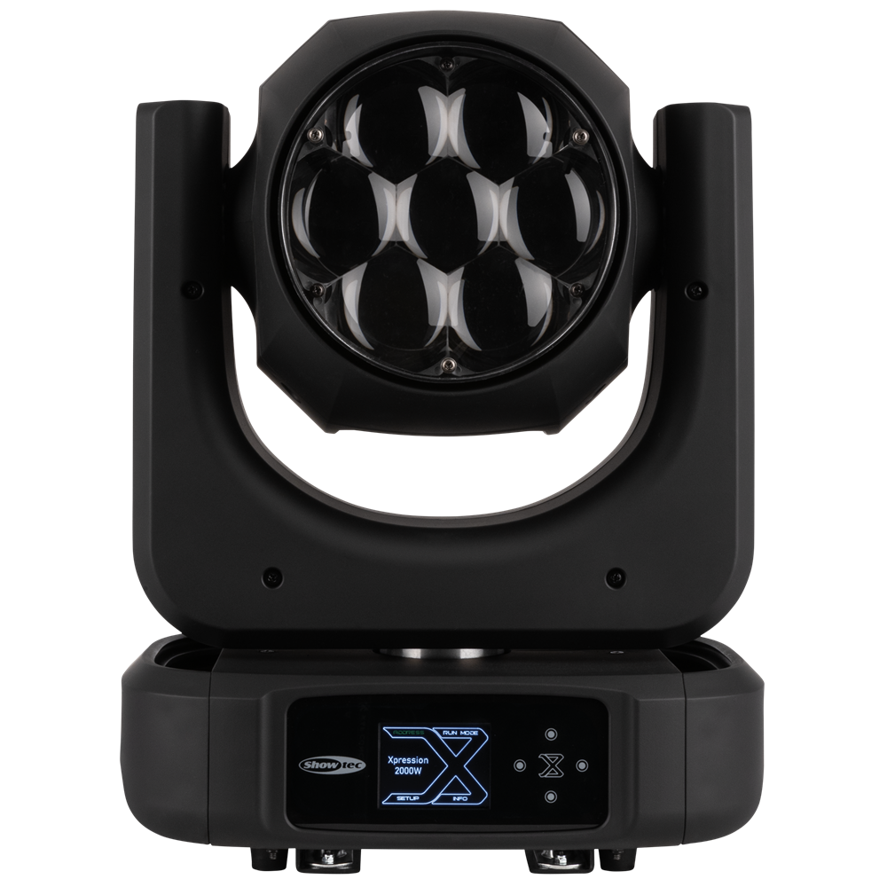 Showtec Xpression 2000W - WashBeam er et lyst, mellemstort LED bevægeligt hoved med en justerbar strålevinkel mellem 3,8° og 35°, og en output på 3166 lumen, der er passende til indendørs steder. Den har syv 40-watt RGBW-LED-pærer, motoriseret zoom, præcis 16-bit pan og uendelig tilt, samt justerbart PWM (1,200 - 15,000 Hz).
