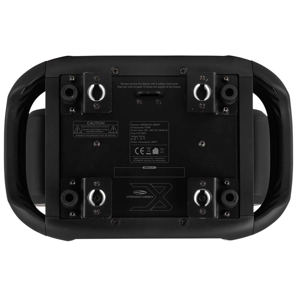 Kontrolmetoder inkluderer DMX/RDM, master/slave, manuel, auto, indbygget program og selvstændig. Brugerdefineret programmering giver dig mulighed for at oprette og gemme dine egne forudindstillinger, hvilket eliminerer behovet for en ekstern controller til små begivenheder. Den inkluderede hurtiglås kan justeres til flere positioner for fleksibel montering. Basen har et ergonomisk håndtag, der både forbedrer funktionaliteten og det overordnede stilfulde design.