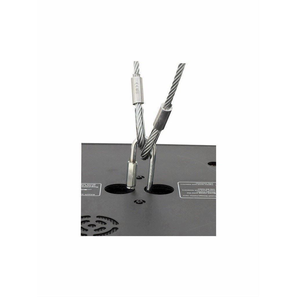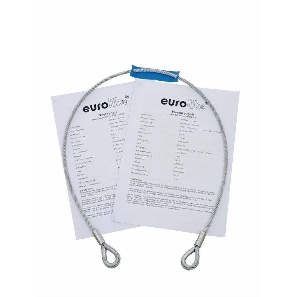 The EUROLITE safety bonds comply with the current regulation of the German professional insurance association as summed up in BGI 810-3:2007-03 Loads above persons. The safety bonds are constructed in accordance with the European standards DIN EN 12385-4:2008-06 and DIN 56927:2009-03.