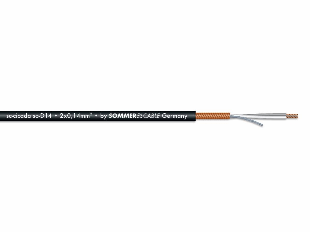 This tiny twist with its 2.6 mm diameter fits in wherever there is little room. The SC-CICADA SO-D14 was originally developed as a high quality cable for the inside wiring of racks and audio equipment, but being tested extensively by various manufacturers of microphones, they very quickly relised the excellent technical and electrical values of the cable. In the meantime the SC-CICADA can be found on many clip and ear microphones, head sets, and speaker units.Especially appreciated is the extreme flexibility, the dense spiral shielding, and the pre-twisted and tin-plated drain wire on the SC-CICADA SO-D14, which gives the cable additional protection against bending and tearing.If you are a manufacturer of high quality audio components, then wire your units with this cable! The low noise and the shielding will amaze you!Available with a PUR-jacket (resistant to notching and cold temperatures!