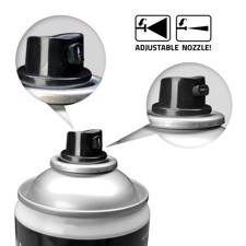 A special valve can be used to set the spray position to either vertical or horizontal. Depending on the material, up to 4 square meters of material can be bonded per can. Once dried, the adhesive is temperature-resistant from -20 °C to +115 °C.