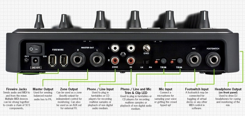 Den er designet i et DJ-format, som umiddelbart føles bekendt for alle, som har stået bag et DJ-setup. SCS-1m har bl.a. 4 channelstrips med faders og EQ-kontroller ligesom en følsom crossfader og en enkel cue/monitor-sektion. Der findes også mulighed for at koble en "rigtig" pladespiller eller CD-spiller ind via en aux-indgang. Lige perfekt som selvstændig mixer som i kombination med SCS-1d.