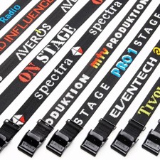 | Få din egen tekst eller logo på dine Arno stropper. Du kan få op til 2 farver foruden stroppens sorte farve. Tekst og logo væves ind i stroppen, så det er yderst holdbart og ikke slides af som på stropper med tryk. Minimumskøb er blot 300 meter stropper, dvs. f.eks. 600 stropper på 50 cm. Stropperne fås fra 25 cm. og helt op til 10 meter! Med din egen tekst og/ eller logo, kan du altid kende dine stropper og de kabler de sidder på og det samme kan kollegaer og udlejningskunder, så man aldrig er i tvivl. Samtidig er det god eksponering af din virksomhed. |