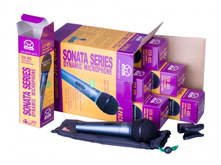 Superlux ECO88S 6 PACK er en pakke med 6 dynamiske vokalmikrofoner med et forstærket gitter og en supercardioid-retningsevne.