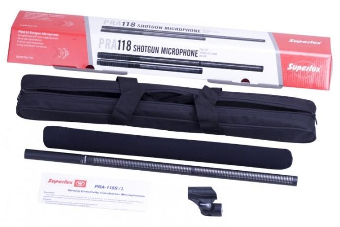 Superlux PRA118 shotgunmikrofonen er en meget retningsbestemt pro-elektret kondensatormikrofon med en specifikt afstemt frekvensrespons, hvilket gør den ekstraordinær ved undertrykkelse af lyd uden for aksen. PRA118 er velegnet til film, EFP-produktioner, teaterlydforstærkning og SNG / ENG-opgaver.