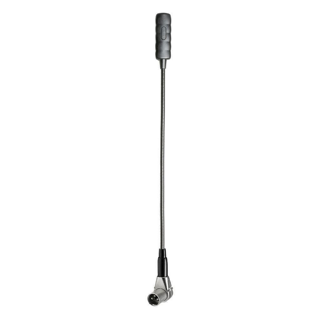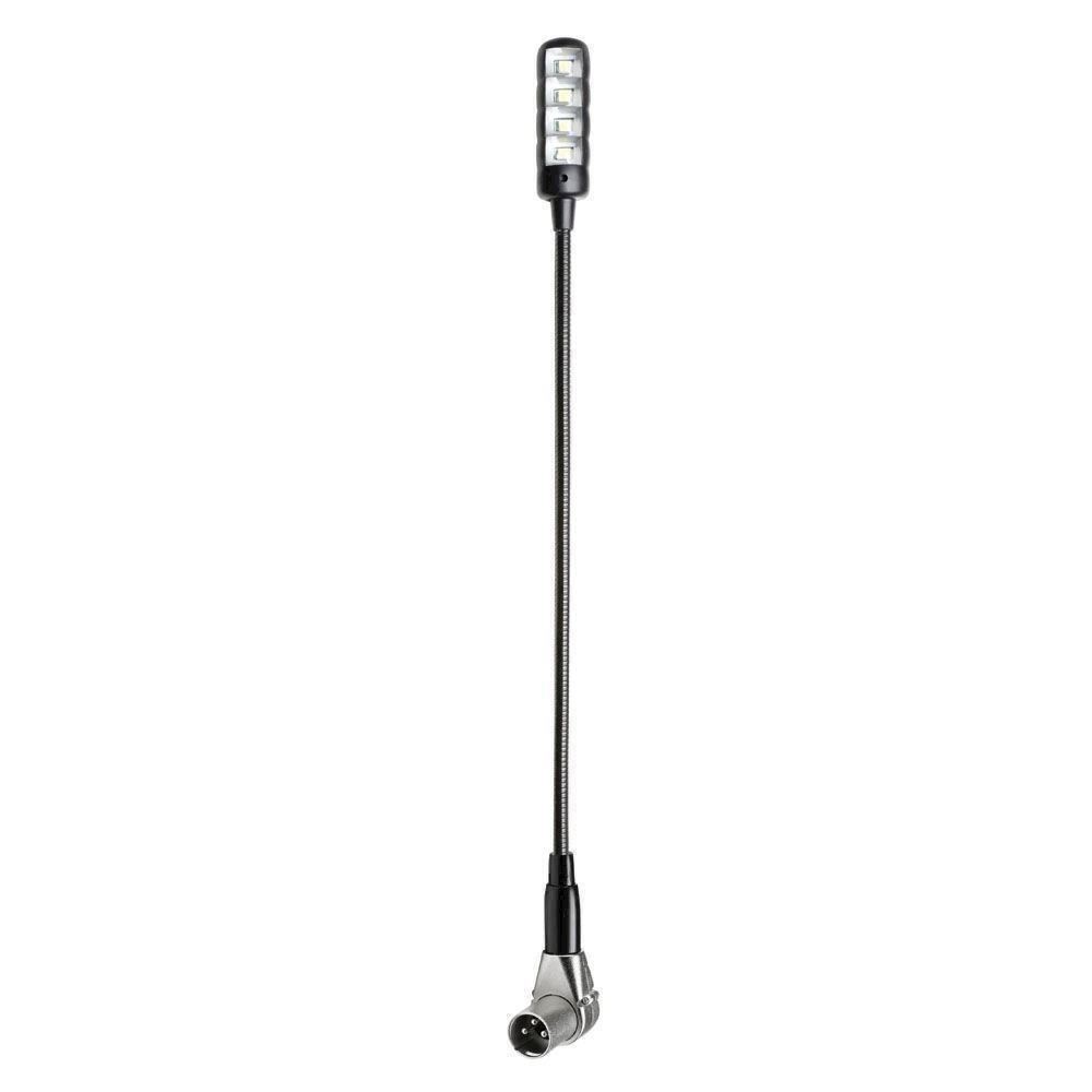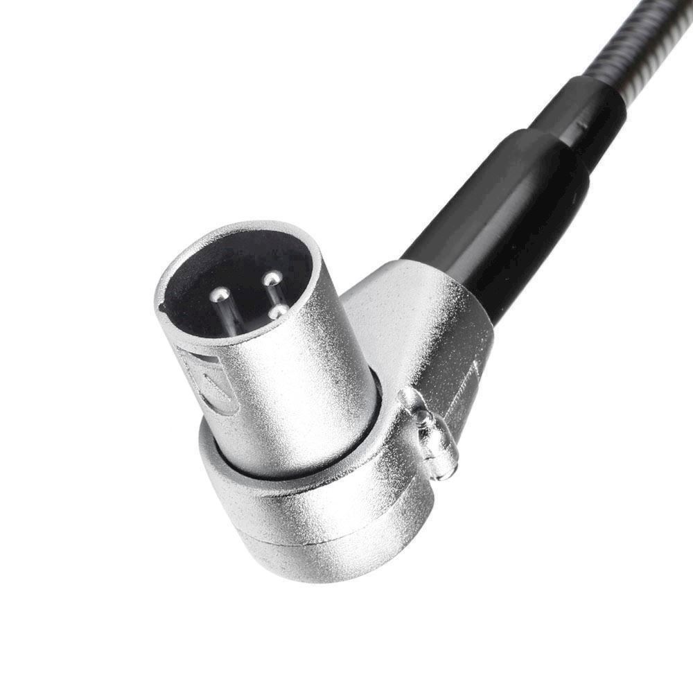 The SLED 1 ULTRA XLR 3 A is a matt black gooseneck light with 4 extra bright white COB LEDs and 3-pin male angled XLR plug that works on dedicated 12 volt task light and 48 volt phantom power. The 300 mm gooseneck is easily flexible yet stays put where you bend it, the power switch is conveniently located on top of the lamp.