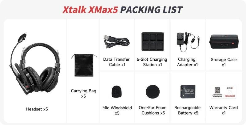 Synco Audio Xtalk trådløs intercom sæt med 5 headset.