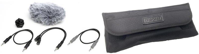 Kabel til optimal lydforbindelse til kamera, Split-kabel til samtidig tilslutning af hovedtelefoner og kamera, Kamerasko til fastgørelse af optager til kamera, Vindhætte imod vindstøj, Grip til håndholdt optagelse, blød bæretaske, Ideel til brug sammen med DR-05, DR-07MKII, DR-40, DR-100MKII.