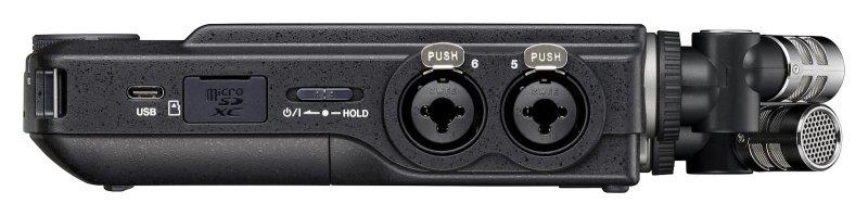 Included mics plus inputs 5/6, phantom power on, stereo WAV recording at 44.1 kHz / 24-bit