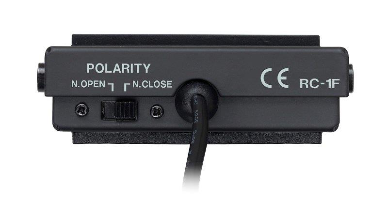 RC-1F er en simpel, øjeblikkelig (ikke-låsende) fodkontakt til håndfri kontrol af flere Tascam-produkter. Fodkontakten består af slidstærkt støbejern med en kraftig metalfjedermekanisme, og glidebestandige gummioverflader på top og bund. Den leveres med et 1,80 m langt forbindelseskabel med 6,3 mm jackstik. For maksimal fleksibilitet giver en polaritetsafbryder på bagsiden mulighed for at vælge mellem normalt åben og normalt lukket drift.