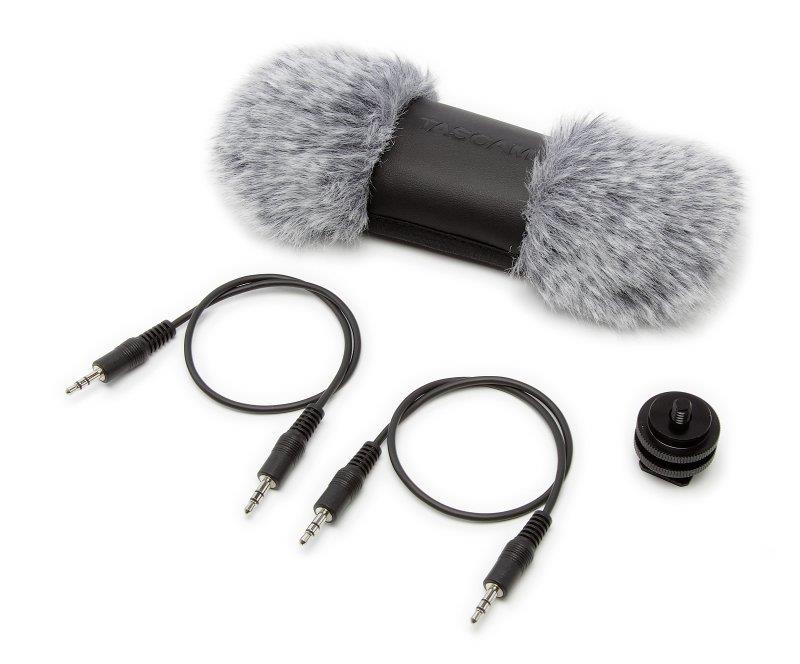 Vindhætte beskytter imod vindstøj. Kamerasko som kan fastgøres til kameratilbehøret eller optageren. To 3,5 mm stereo mini jack kabler (300 mm lange) til at forbinde DR-701/DR-70D til et DSLR-kamera.