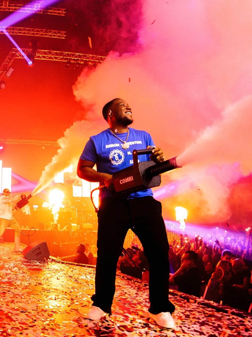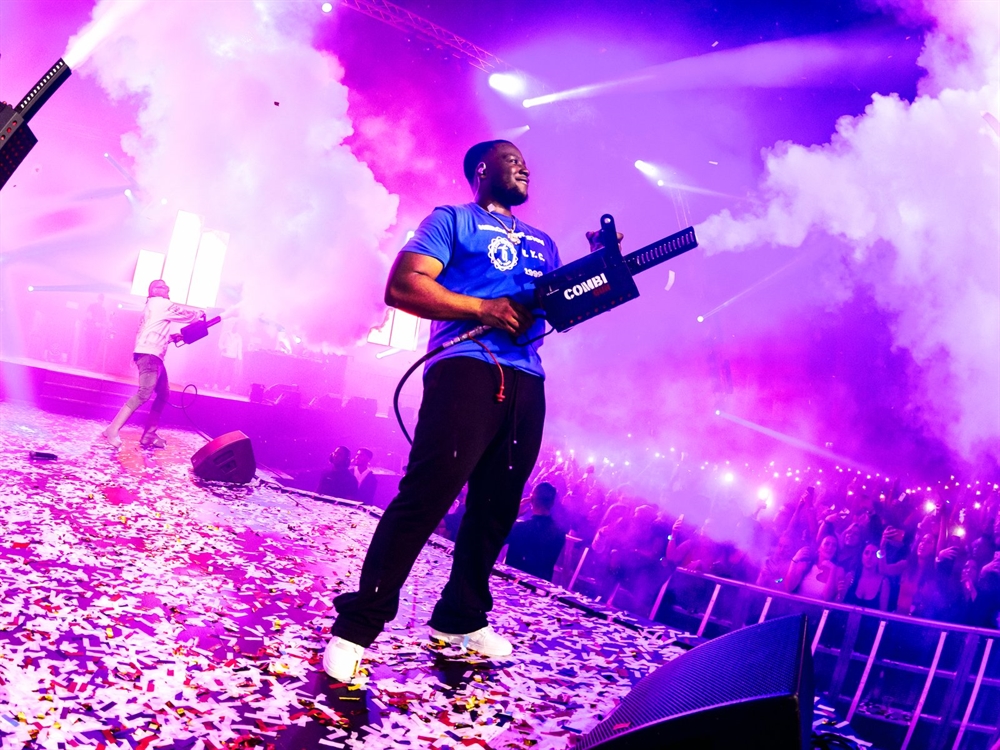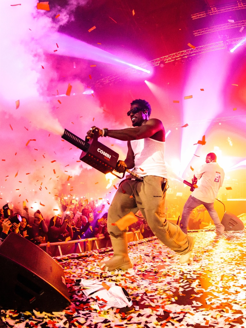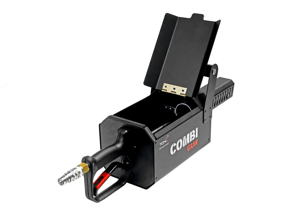 CO2 håndholdt pistol skyder enorme hvide CO2 skyer og konfetti