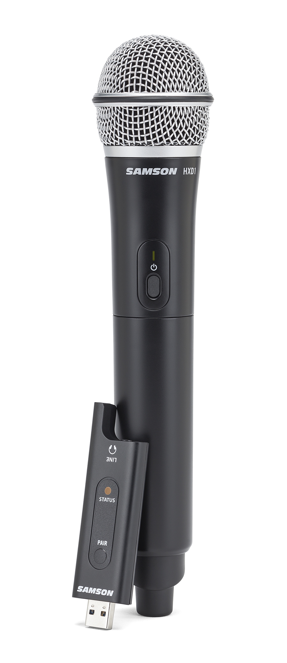 I modsætning til traditionelle trådløse systemer med store modtagere, der kræver vekselstrøm eller batterier, har XPD2 Handheld en innovativ modtager, der er indbygget i et USB-stik. Denne bekvemme design tilsluttes og får strøm fra en standard USB-port på en computer. 1-touch parring og 20 timers batterilevetid på senderen betyder kortere opsætning og længere performance. Den ekstra 1/8" (3,5 mm) udgang muliggør hovedtelefonovervågning eller brug af XPD2 Handheld med enhver enhed, der har en analog linjeindgang.