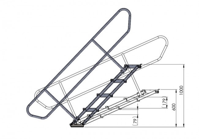 Trinnenes dimensioner er 75 x 25 cm (BxD), og trappeklapperne kan sammenklappes for nem opbevaring.