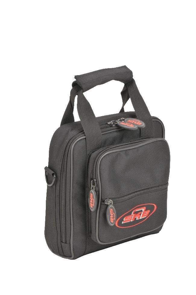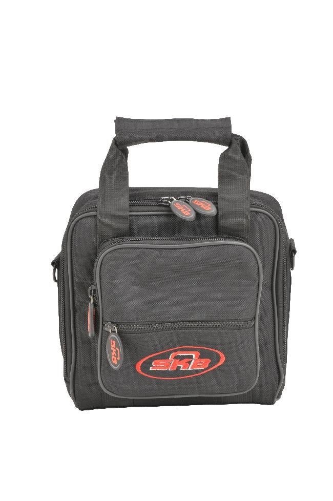 Universal Mixer/Equipment Bags are the perfect solution for protecting and transporting your gear from one gig to another with sizes to accommodate the most popular mixers, drum machines, recording interfaces, midi controllers, light panels and other equipment. The 1SKB-UB0909 Mixer Bag interior measures 9" x 9" x 2.75" and will accommodate smaller equipment like the, Behringer Xenyx 802, Mackie 402-VLZ3, Boss DR-3, Focusrite Scarlett 8i6, Roland R-44, TASCAM DR-680, and Avid Mbox Mini Ultra Compact to name a few.The Universal Mixer/Equipment Bag is constructed of a durable 600 Denier padded exterior with heavy-duty dual zippers, an adjustable, padded shoulder strap and double stitched carrying handle for added convenience. The bag includes a convenient, double zippered padded exterior accessory compartment that is large enough to keep your iPad protected while stowing cables or additional gear.