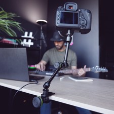 There is a 3/8" thread at the head of the VARI®-ARM for you to screw on a microphone clip, a pop filter and more. The included adapter (3/8" to 1/4" reduction thread) gives you complete flexibility, allowing you to use almost any camera, handheld recorder or smartphone mount on the market with the VARI®- ARM M 38. Thanks to the solid clamp at the bottom of the VARI®-ARM and its large clamping range from 15 to 35 mm, the VARI®-ARM can also be easily attached to most tables and poles (e.g. to tripods). The clamp can also be unscrewed to reveal a 3/8" thread for mounting the VARI®-ARM onto other equipment.