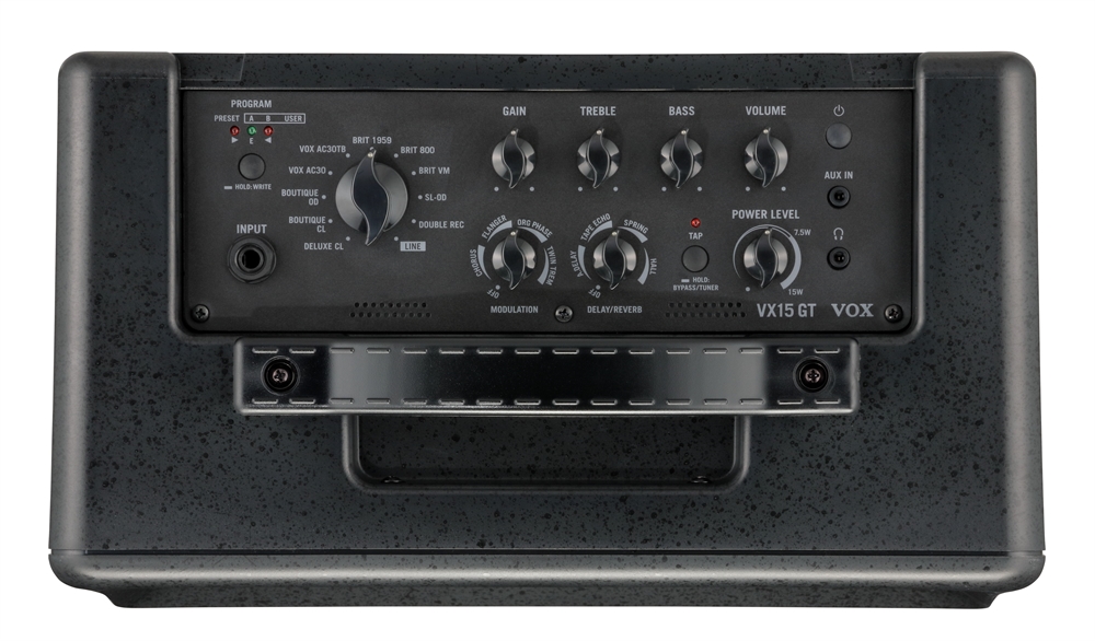 - Input / Output: VX15GT: INPUT jack, Headphones jack, AUX IN jack, FOOT SW jack
