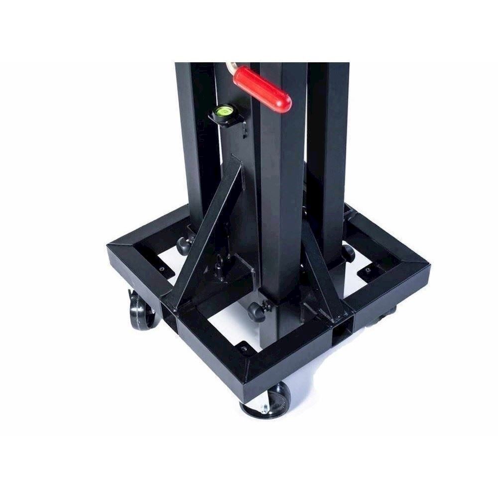Kraftigt stativ der løfter hele 220 Kg. men samtidig er forholdsvis nemt at transportere, med en vægt på blot 72 Kg., hjul under basen og en højde på 1,7 meter.