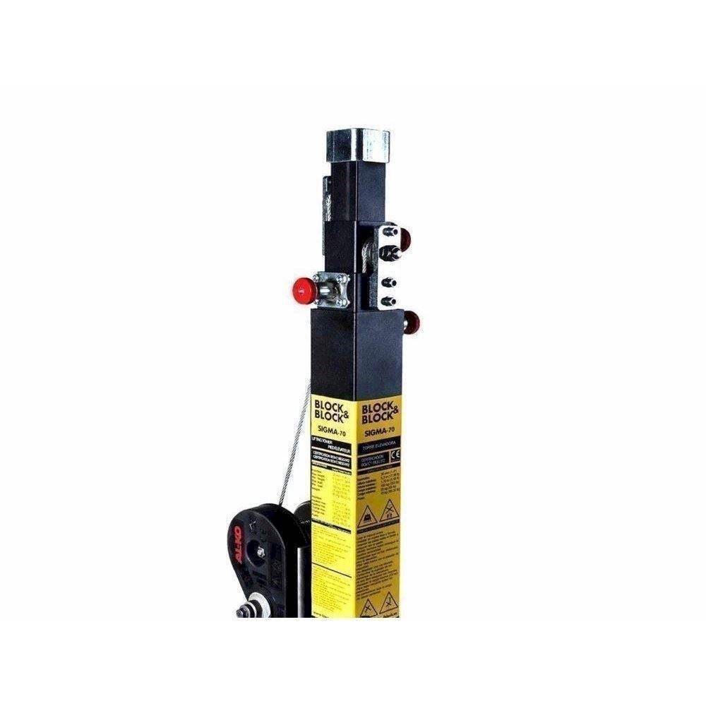 Sigma-70 wind-up stativet består af 4 kraftige stålsektioner, der kan hejses op i 5,3 meters højde, og belastes med 160 kg. Der er 4 hjul under basen, samt et håndtag midt på stativet, så det nemt kan flyttes. Der er sikkerheds-splitter der låser sektionerne i forskellige højder. Justerbare ben og fødder sikrer perfekt forankring og stabilitet.