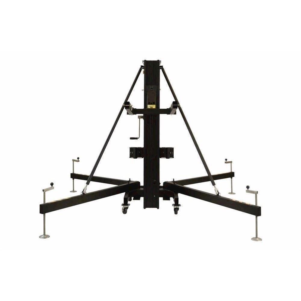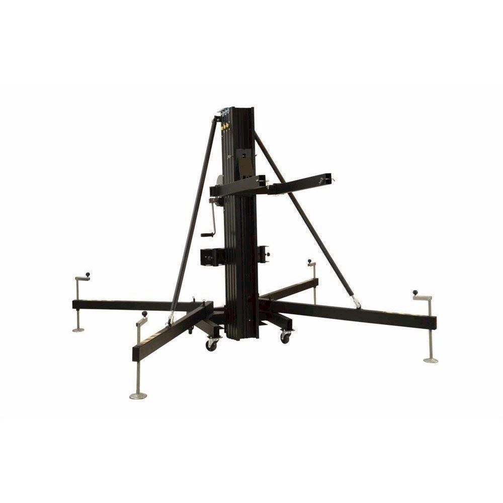 Frontloadet gaffelstativ i en seriøs størrelse og kvalitet. Her kan du løfte hele 600 kg. op i 6,5 meters højde! Suverænt til de lidt større opgaver til truss og line array.