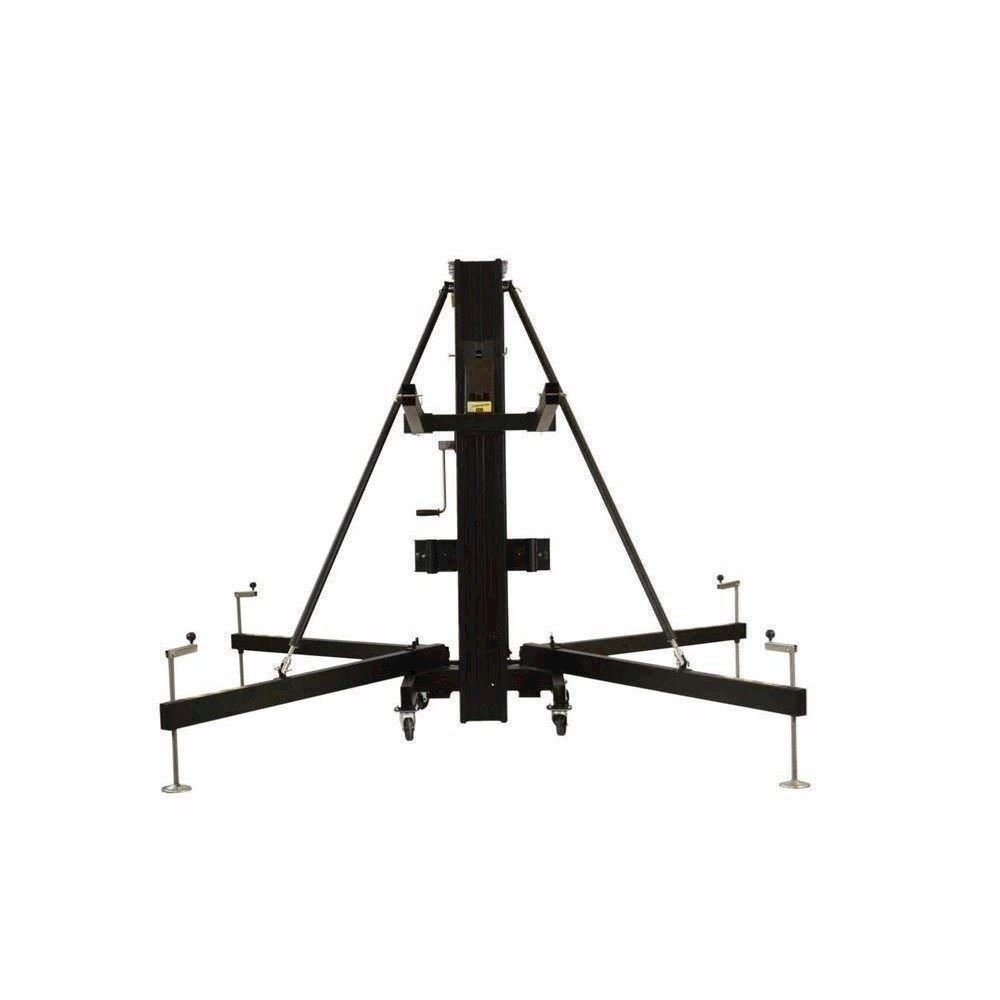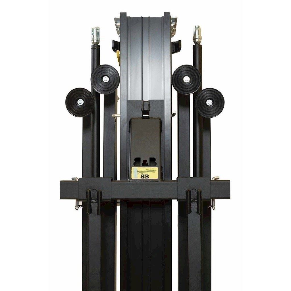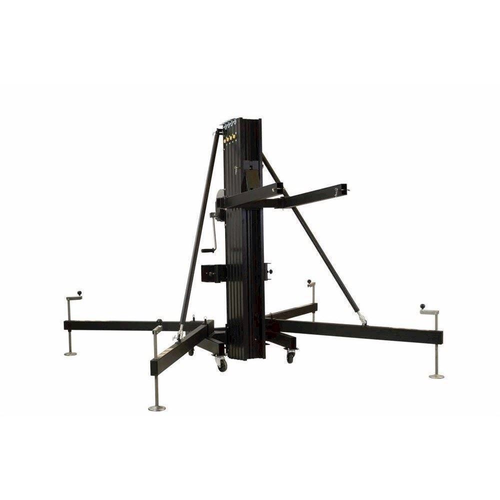 Hele 8 meter løfter dette gaffelstativ, der er velegnet til f.eks. truss og line array systemer. Produceret og godkendt i EU.