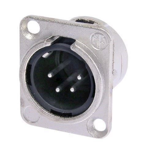 4 pole male receptacle, solder cups, Nickel housing, silver contacts